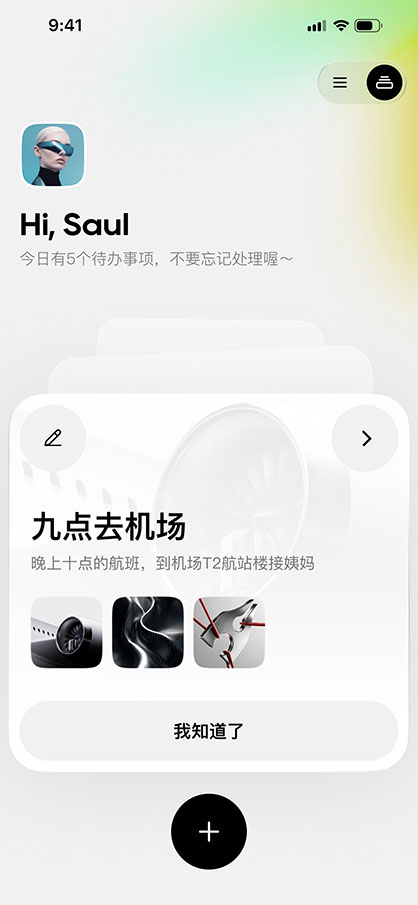 通勤时,它为您播报今日日程;到家时,它自动弹出快递取件码。Aura能理解您所处的环境与习惯,让智能融入生活的每一次呼吸。
